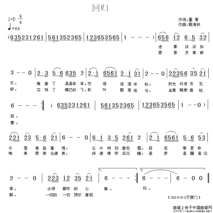 作词:墨寒 作曲:黄清林(墨寒词 黄清林曲)