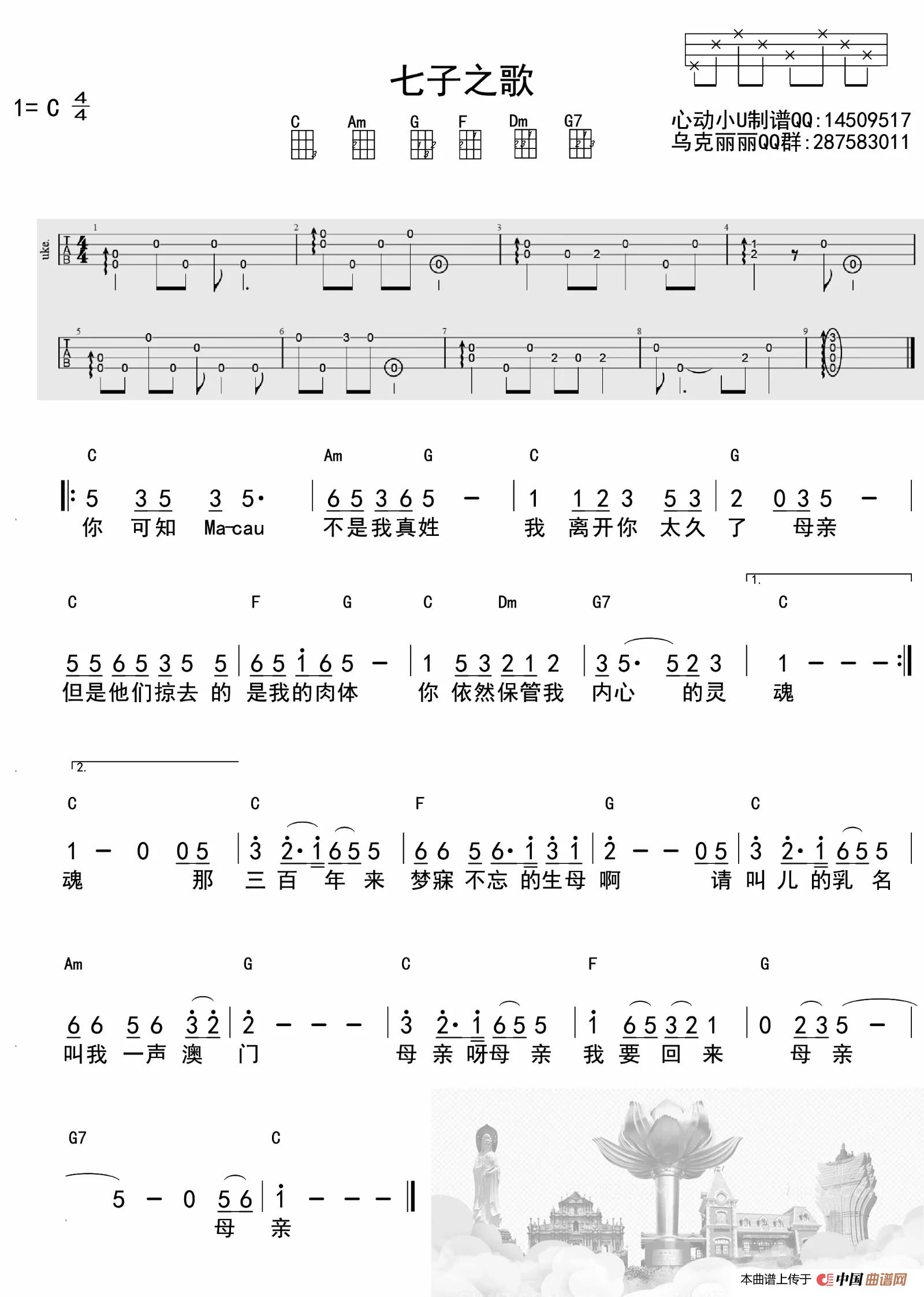 七子之歌——澳门(《澳门岁月》主题曲)简谱