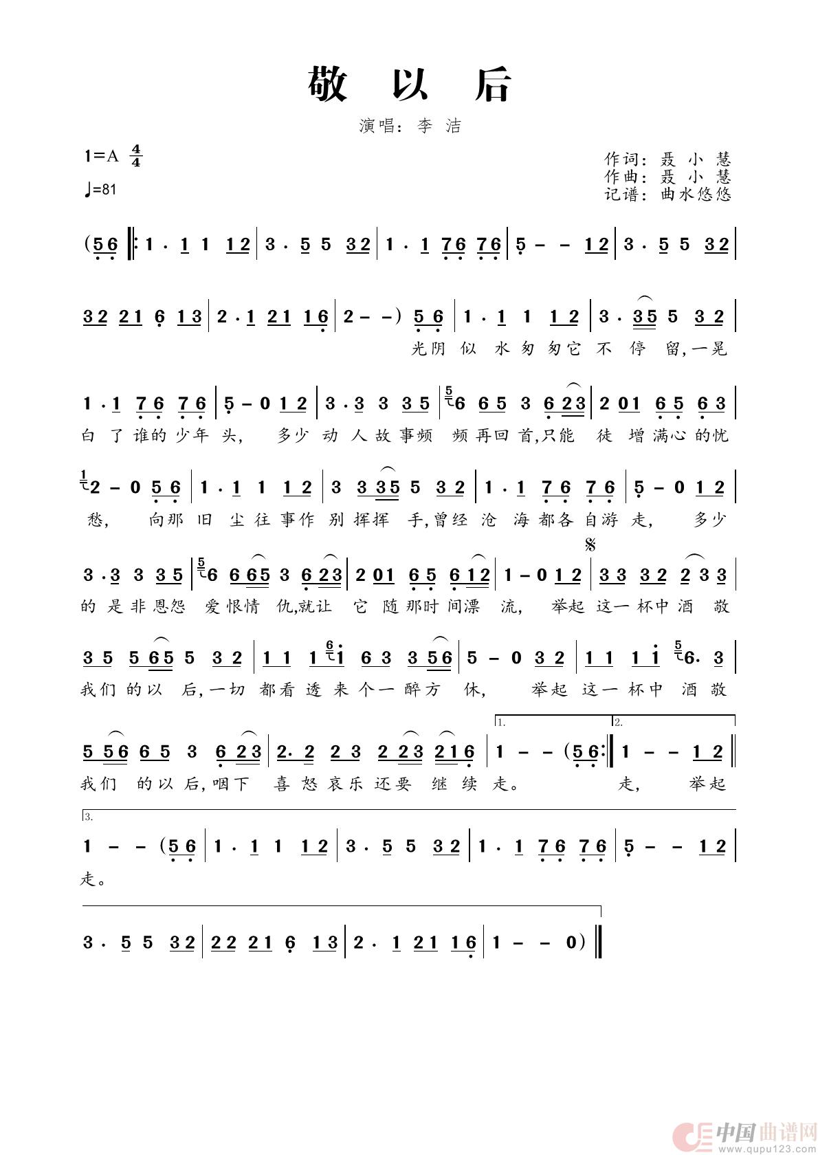 《敬以后》最新曲谱 李洁-曲水悠悠制谱