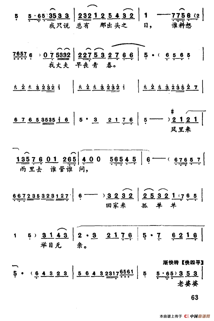 作词:刘奇英 作曲:张斌等编曲(《李二嫂改嫁》李二嫂唱段)