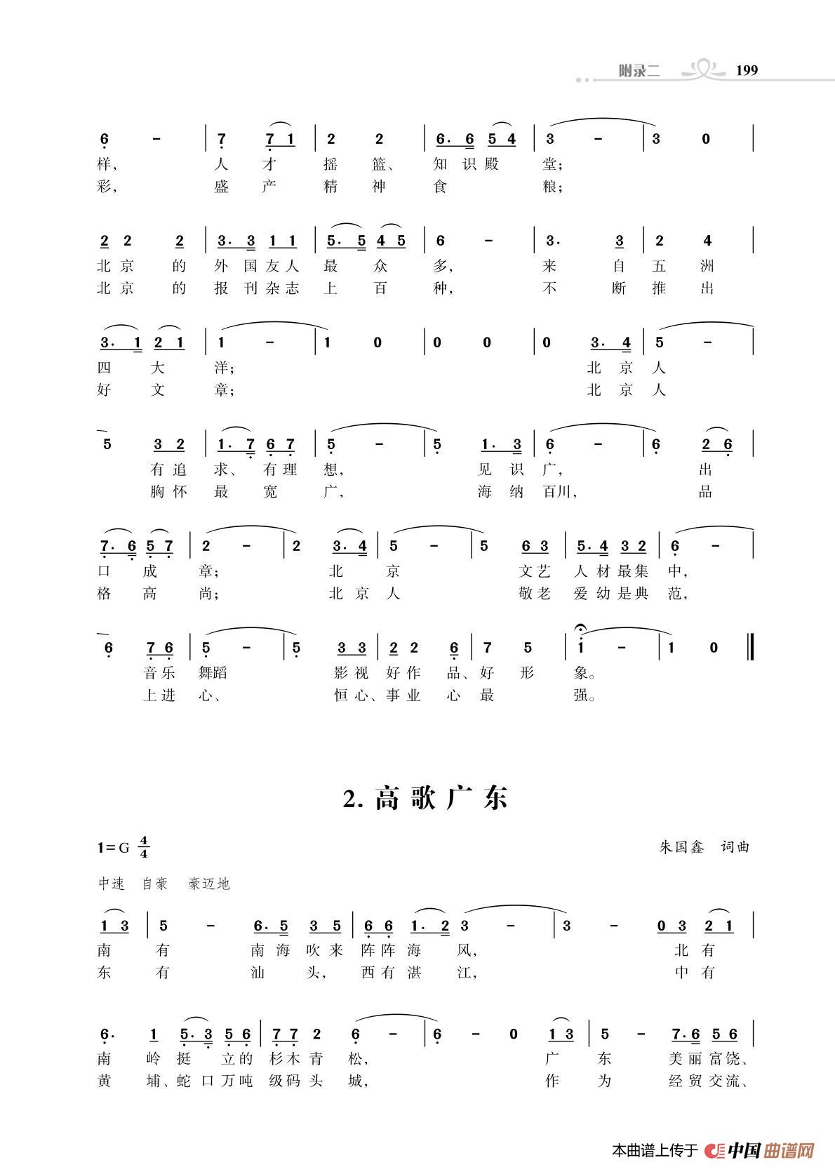 赞颂34个省份组歌:高歌广东/ 相关曲谱