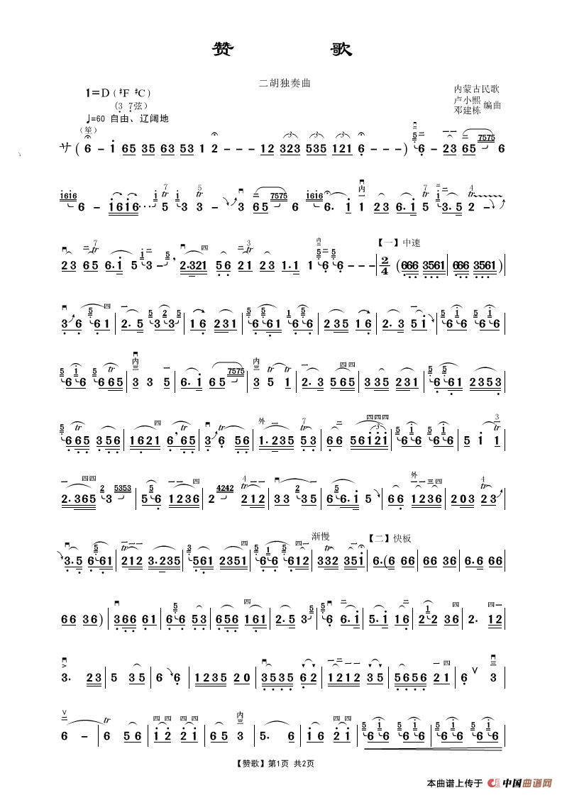 作曲:卢小熙/邓建栋(二胡独奏曲)