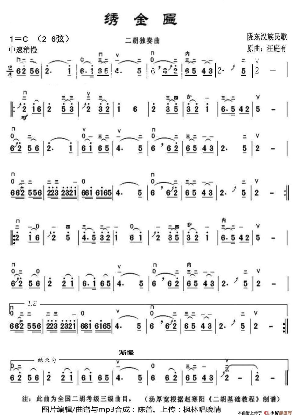 作曲:陇东汉族民歌,原曲:汪庭有(二胡独奏曲)