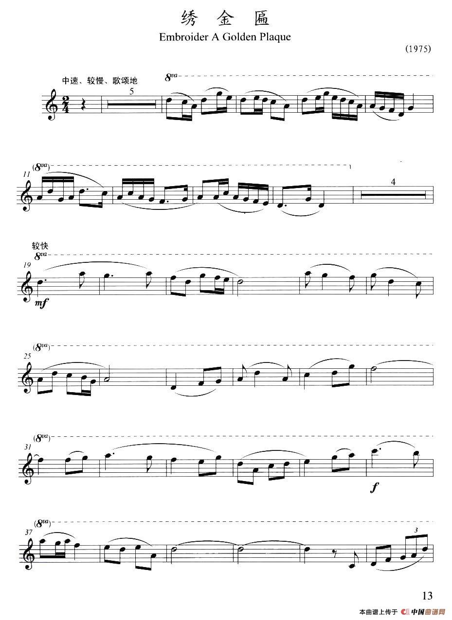 演唱的绣金匾歌词,绣金匾最新曲谱.