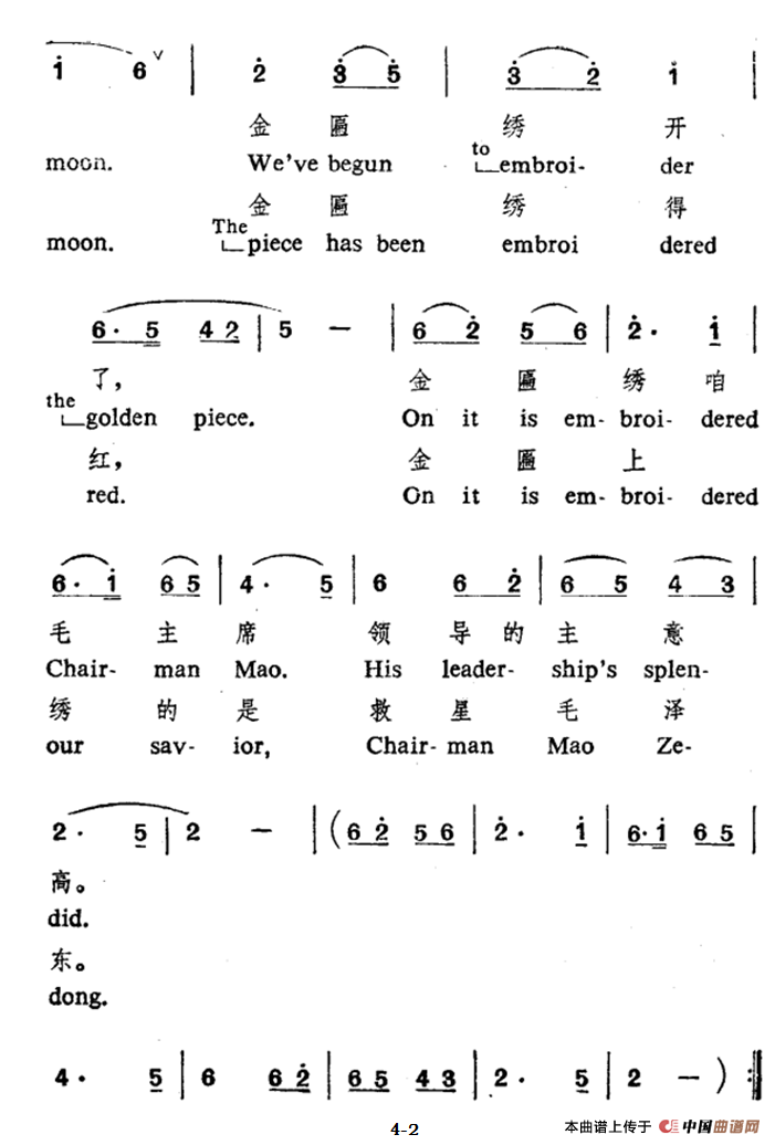作曲:陕北民歌、杨俊云译配(中英文对照)