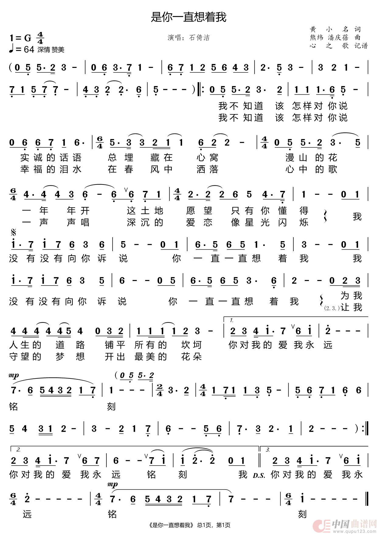 《是你一直想着我》最新曲谱 石倚洁-心之歌制谱