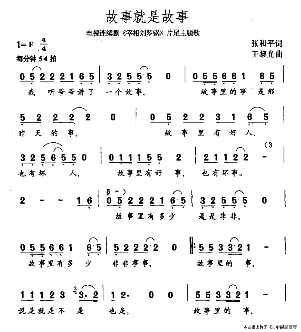 故事就是故事(电视连续剧《宰相刘罗锅》片尾曲)最新曲谱