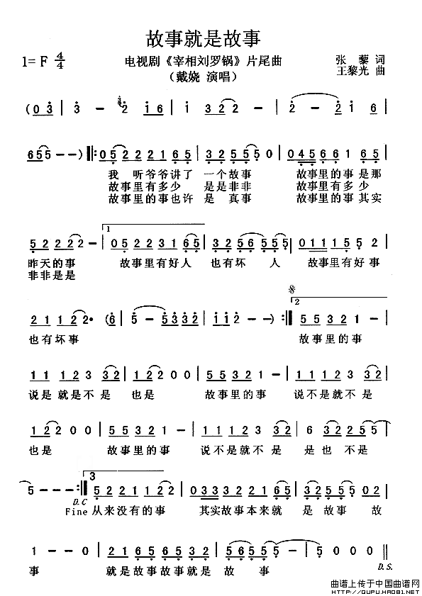戴娆演唱的故事就是故事(电视剧《宰相刘罗锅》片尾曲))歌词,故事就是故事(电视剧《宰相刘罗锅》片尾曲))最新曲谱.