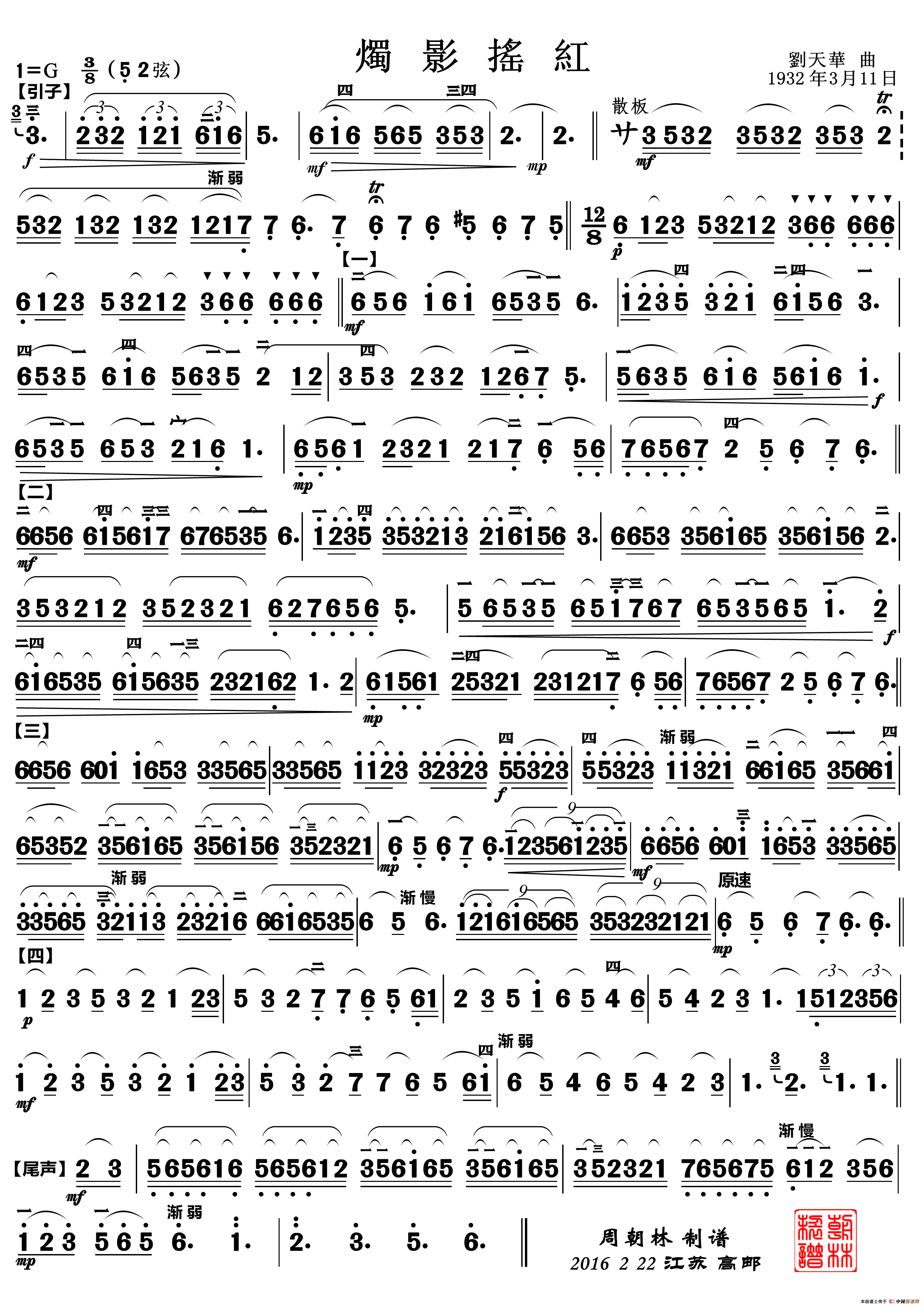 > 烛影摇红最新曲谱
