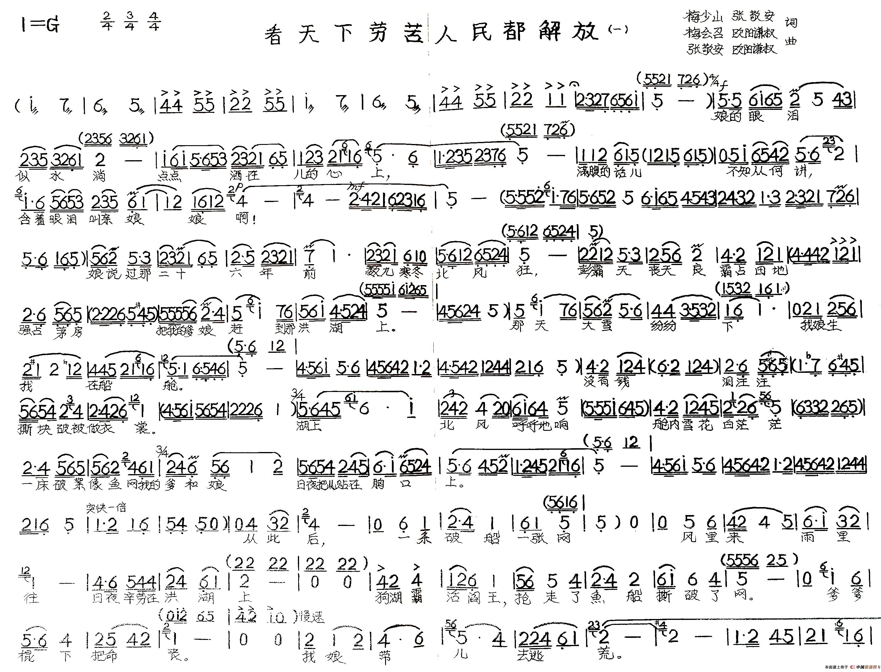 演唱的看天下劳苦人民都解放歌词,看天下劳苦人民都解放最新曲谱.