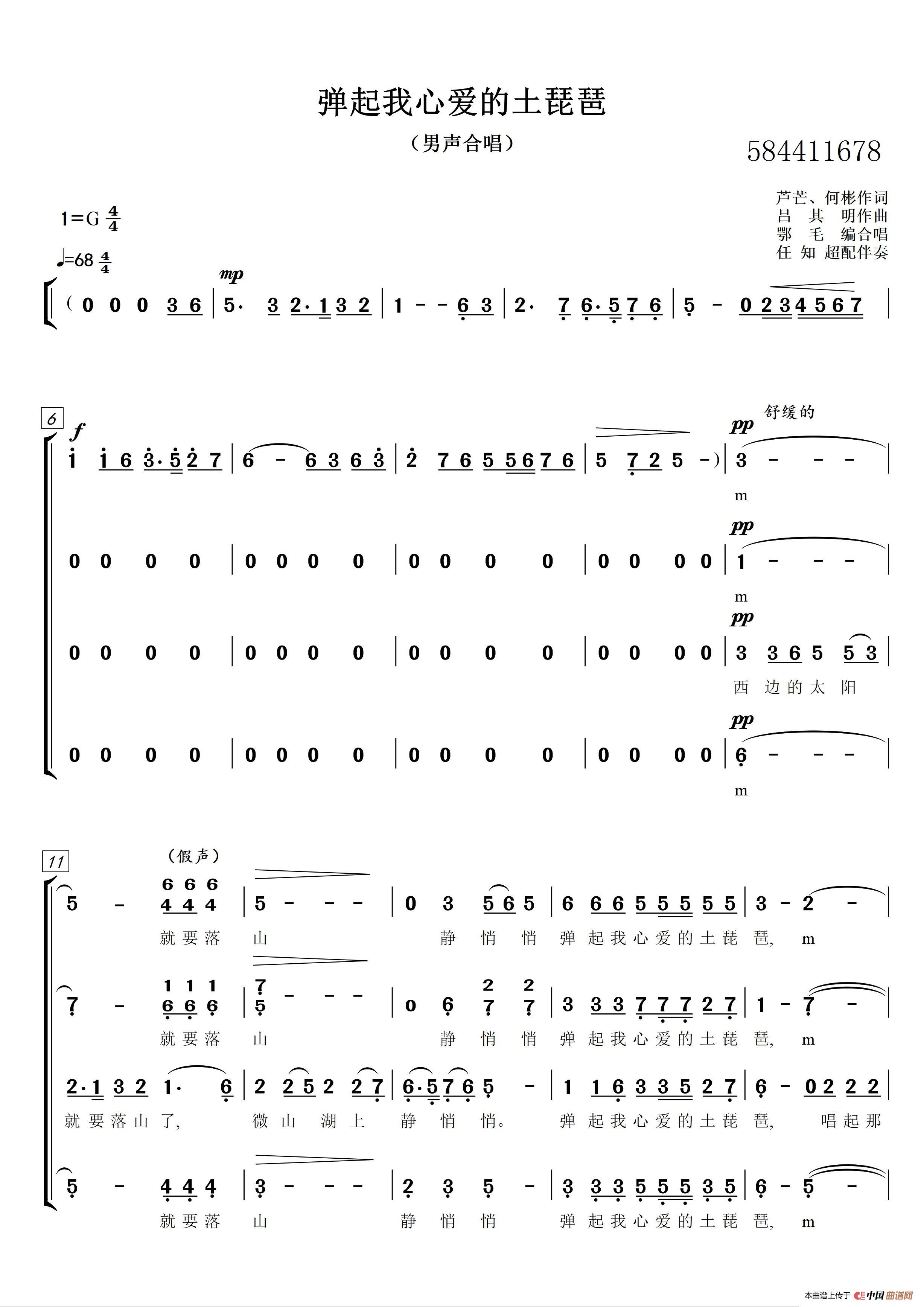 > 弹起我心爱的土琵琶男声合唱谱最新曲谱