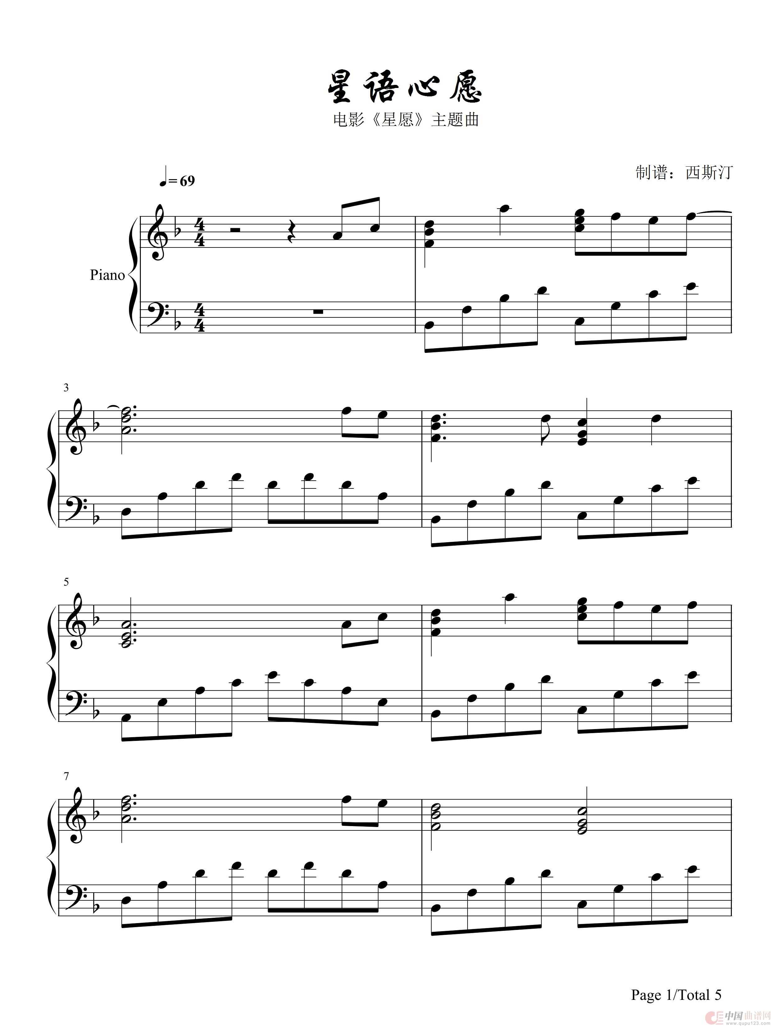 > 星语心愿(电影《星愿》主题曲)最新曲谱