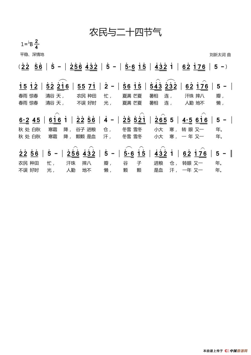 演唱的农民与二十四节气歌词,农民与二十四节气最新曲谱.