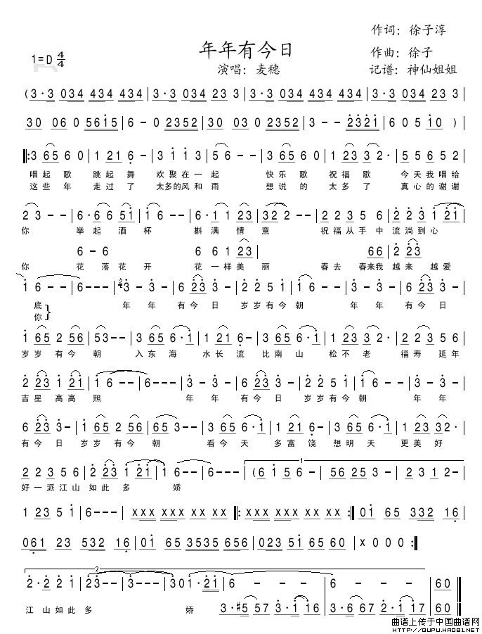 麦穗演唱的年年有今日歌词,年年有今日最新曲谱.