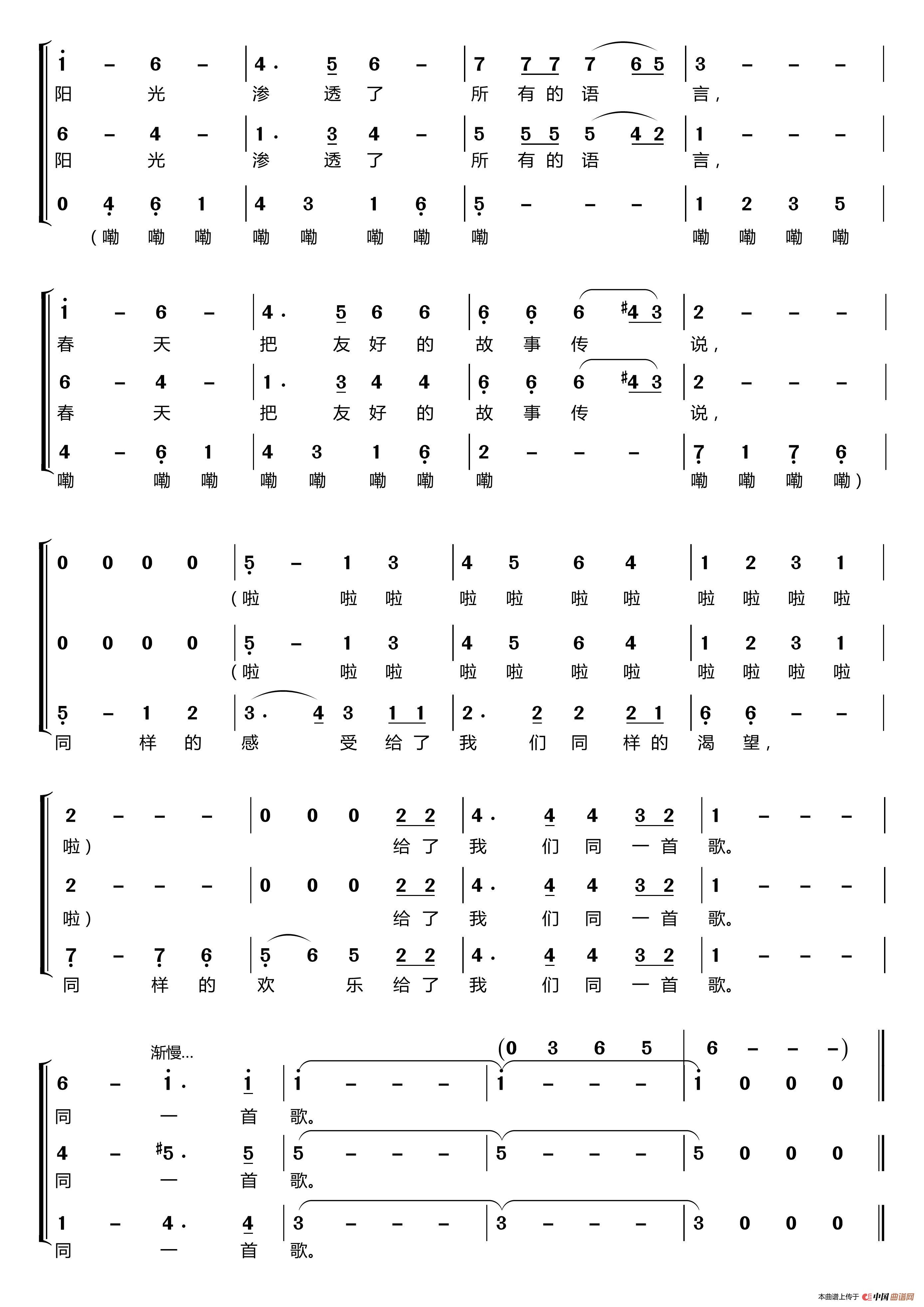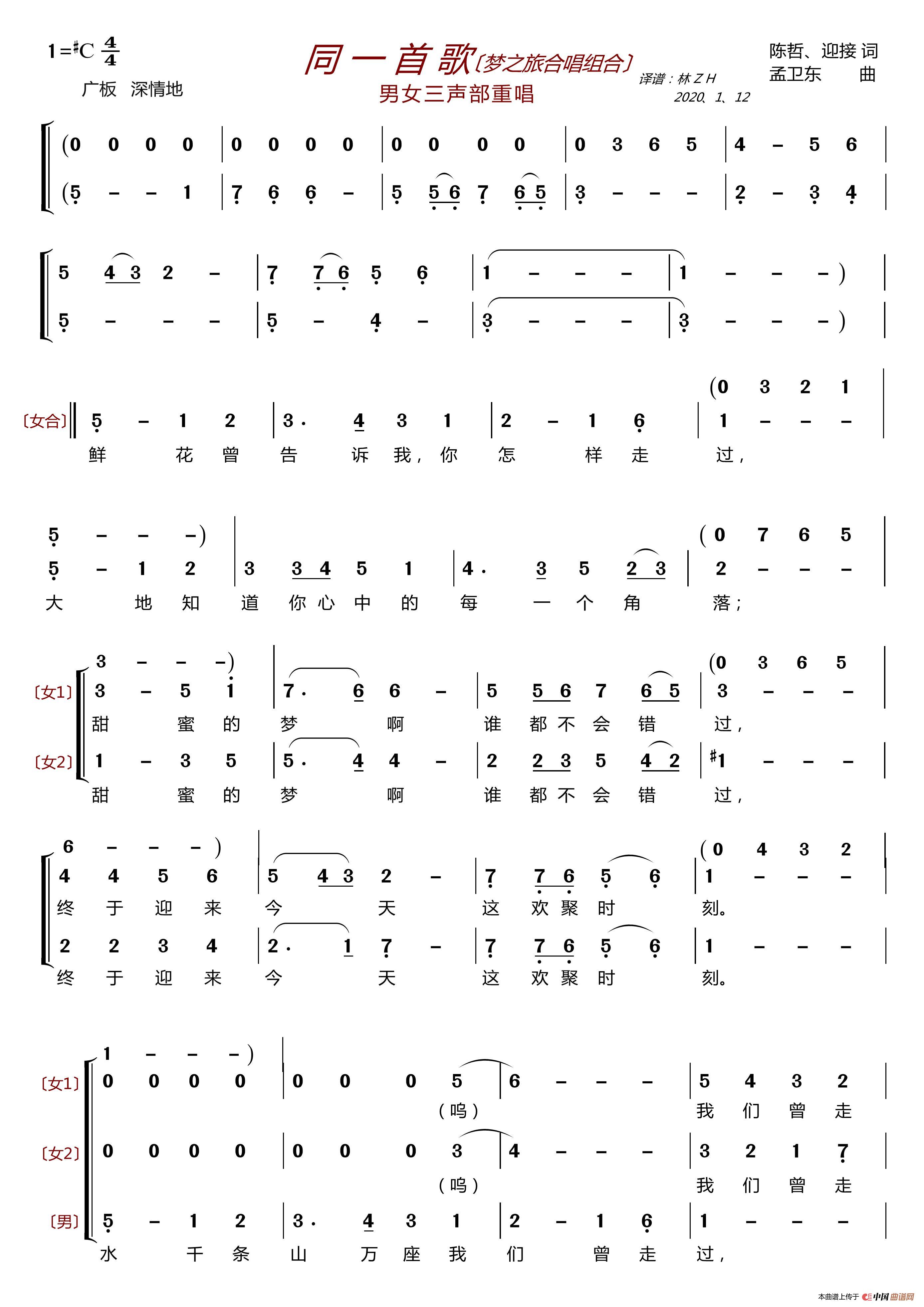 > 同一首歌〔梦之旅合唱组合〕最新曲谱
