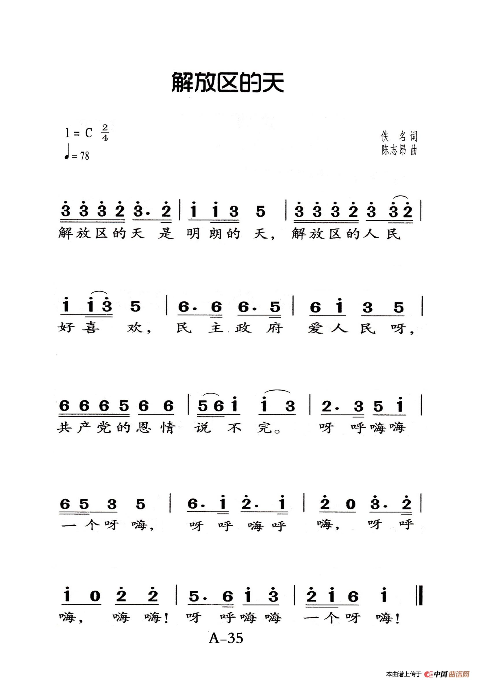 演唱的解放区的天歌词,解放区的天最新曲谱.
