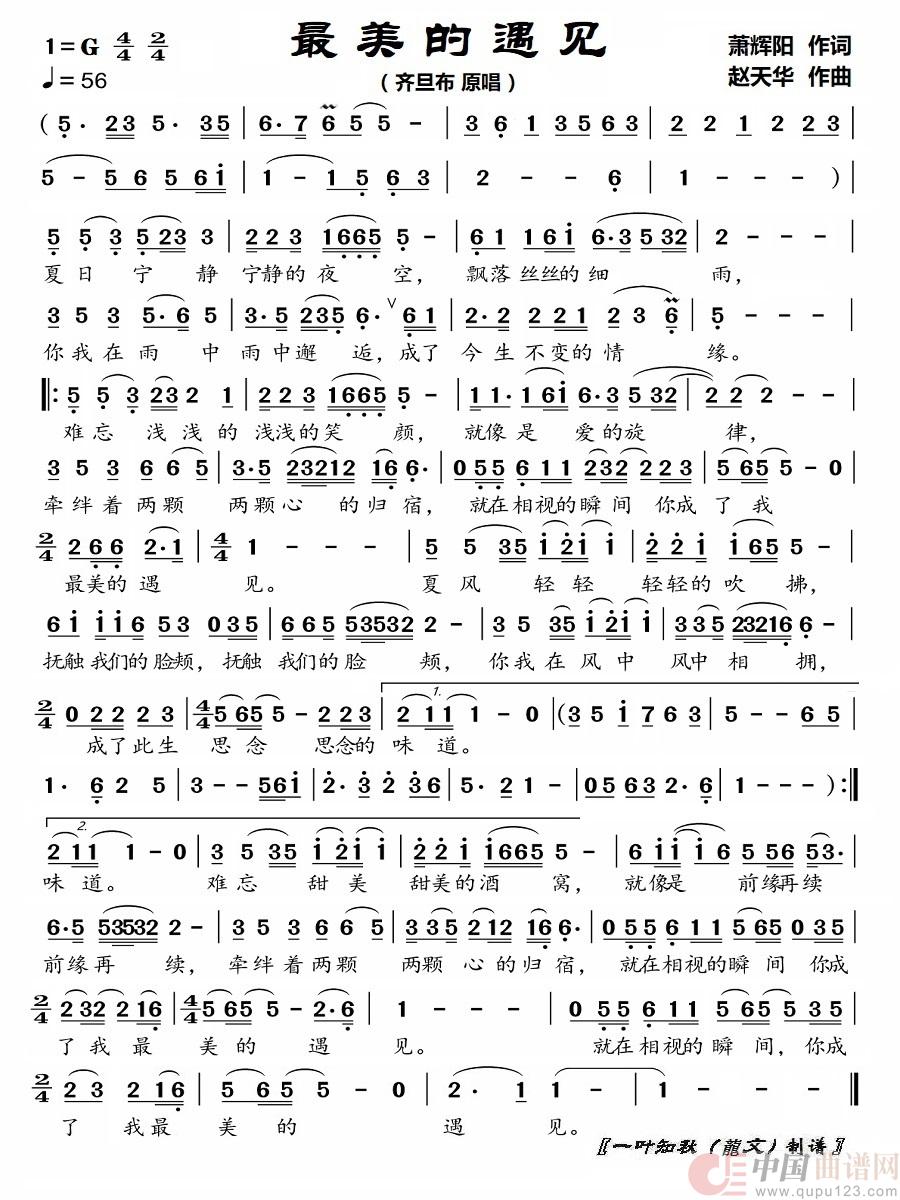 最美的遇见最新曲谱