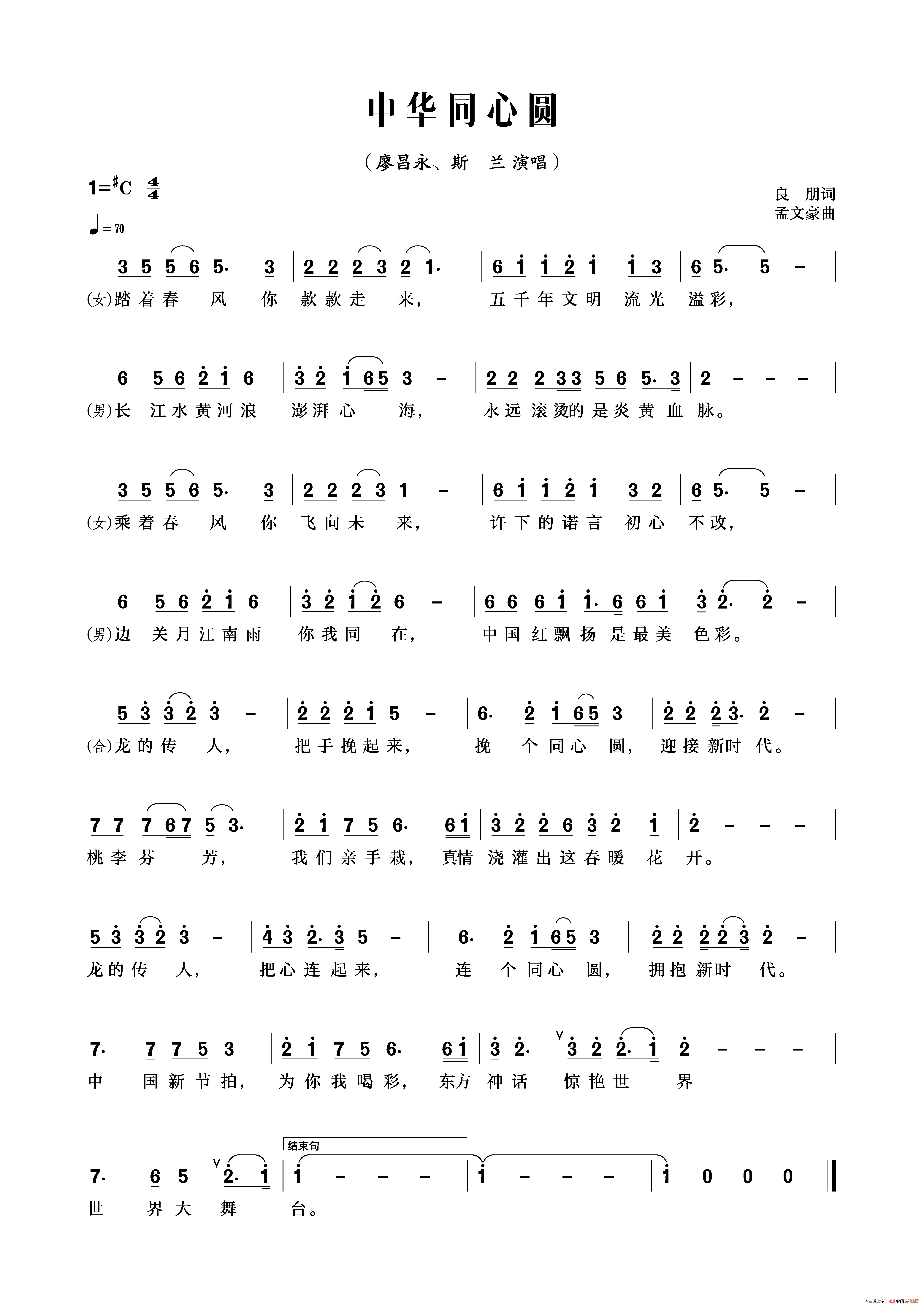 廖昌永、斯兰演唱的中华同心圆歌词,中华同心圆最新曲谱.