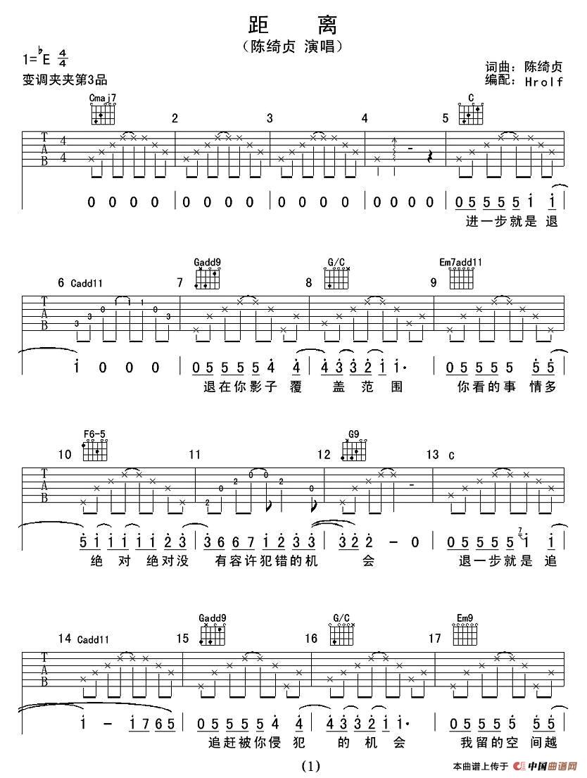 陈绮贞演唱的距离歌词,距离最新曲谱.