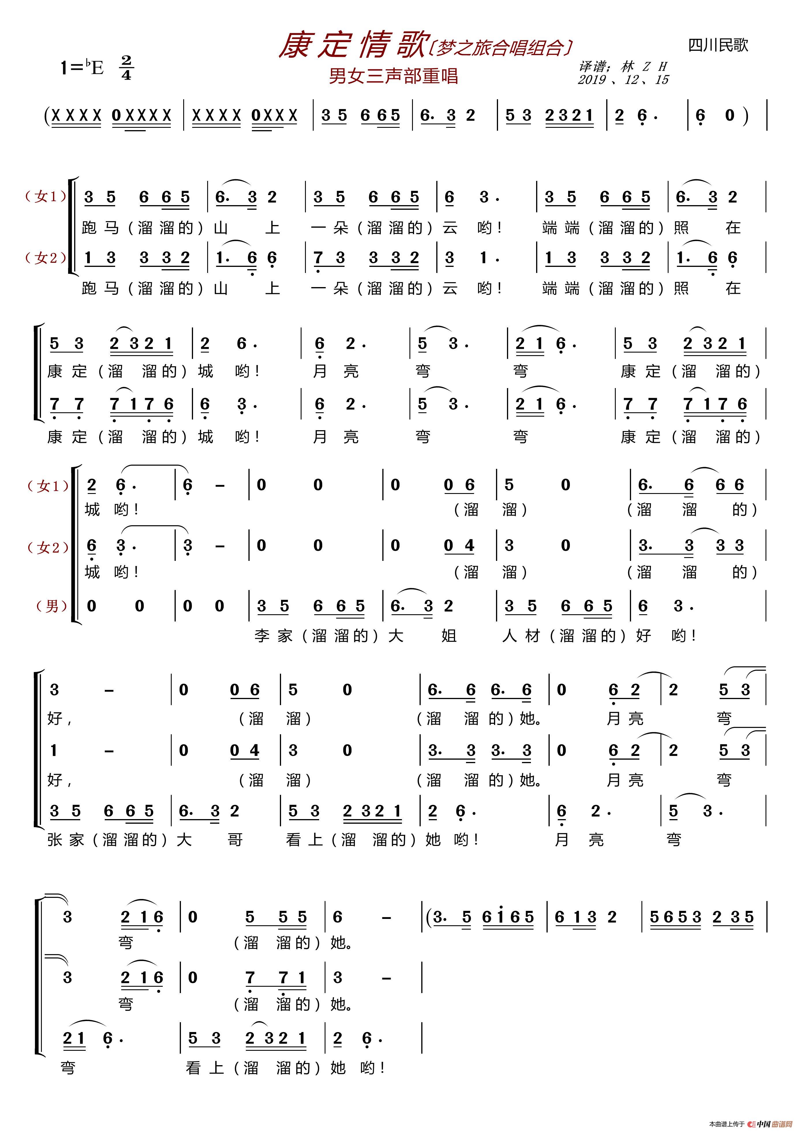 《康定情歌〔梦之旅合唱组合〕》最新曲谱 梦之旅组合