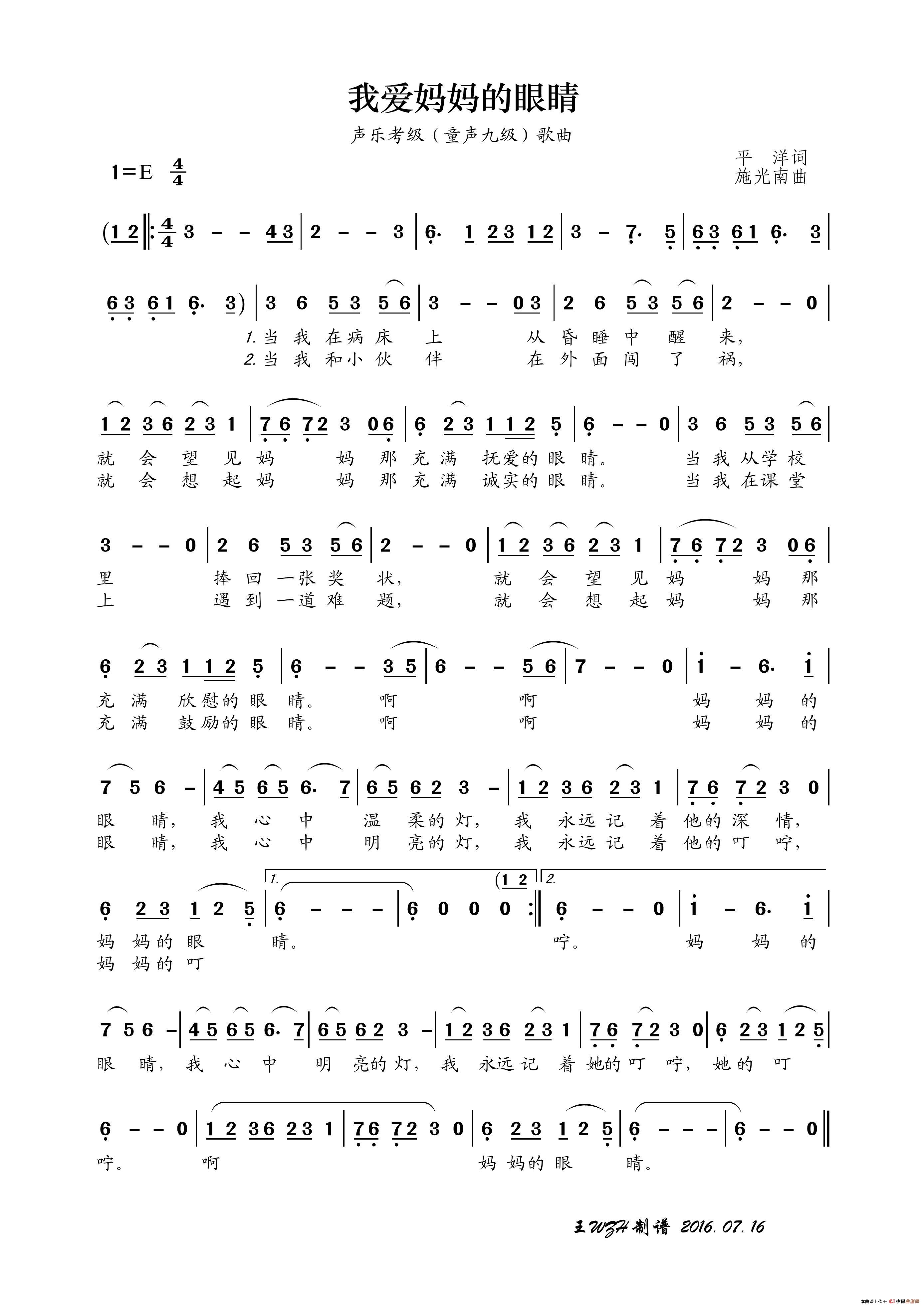 《我爱妈妈的眼睛》最新曲谱 倪雅丰