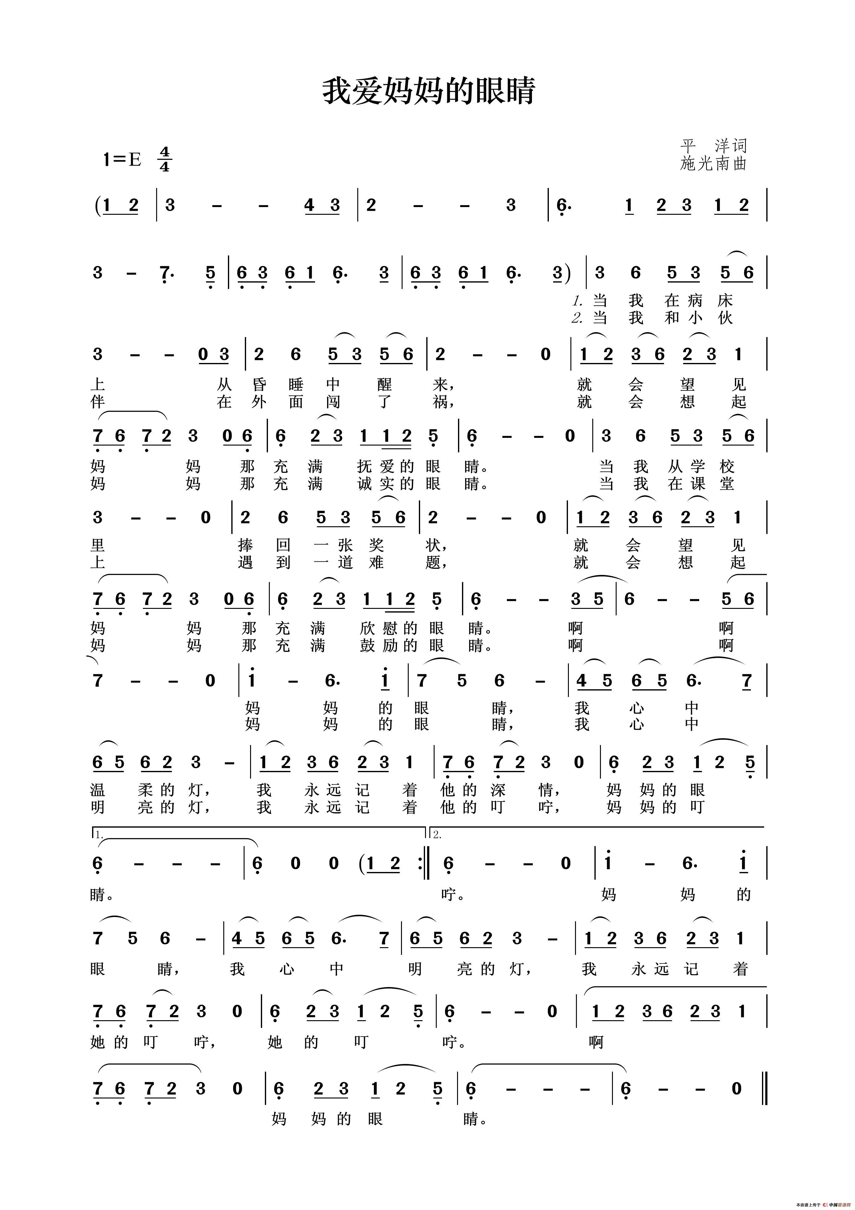 倪雅丰演唱的我爱妈妈的眼睛歌词,我爱妈妈的眼睛最新曲谱.