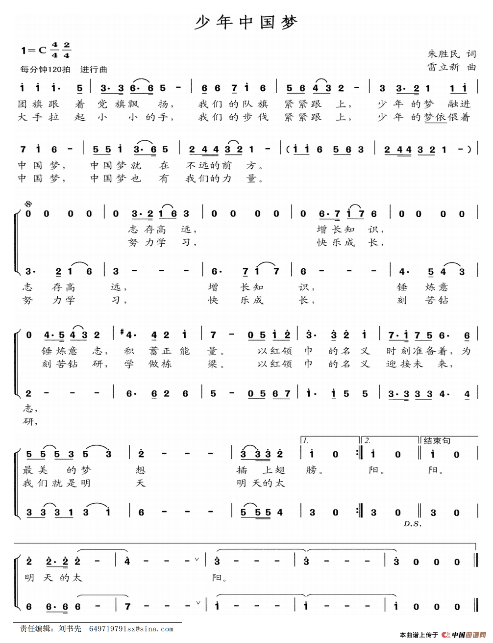 《少年中国梦》最新曲谱
