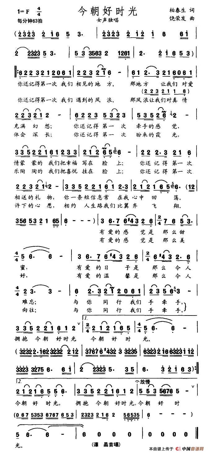 谭晶演唱的今朝好时光歌词,今朝好时光最新曲谱.