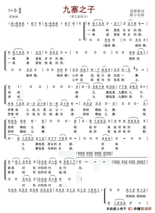 梦之旅组合演唱的九寨之子歌词,九寨之子最新曲谱.