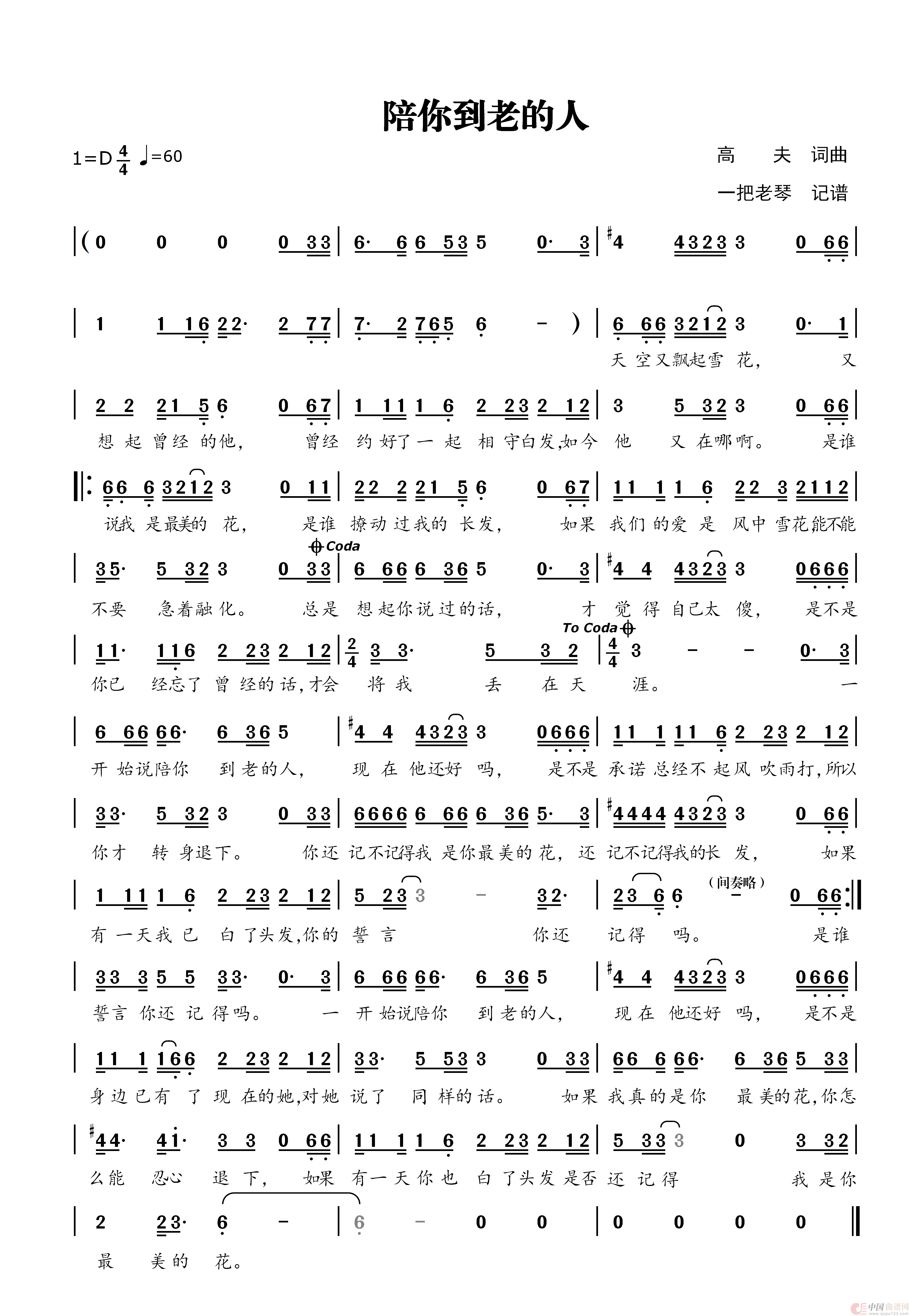 于洋演唱的陪你到老的人歌词,陪你到老的人最新曲谱.