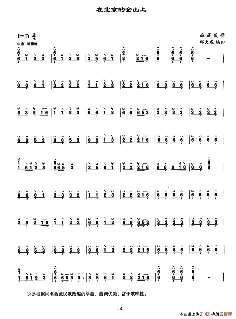 演唱的在北京的金山上歌词,在北京的金山上最新曲谱.