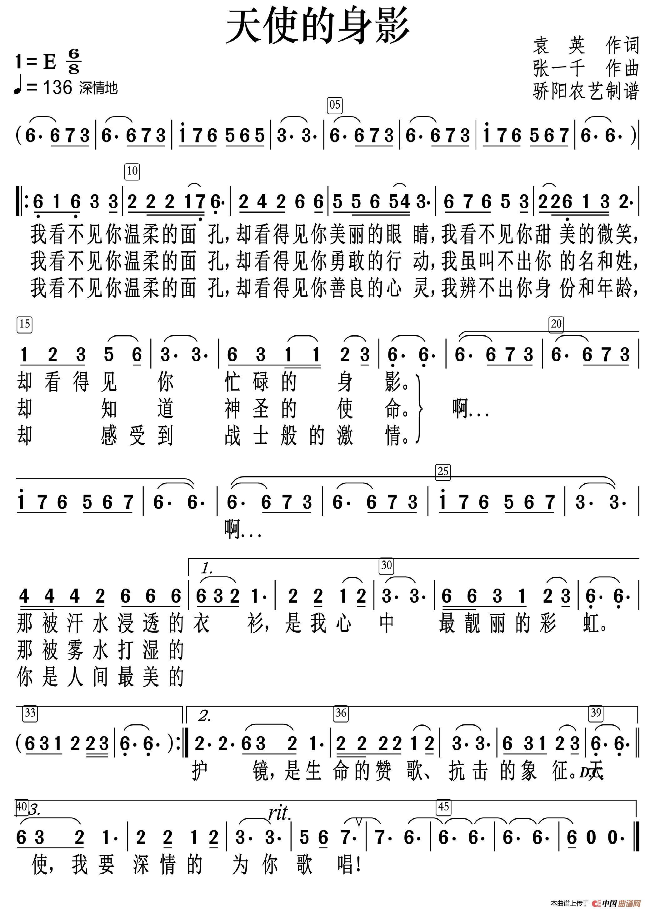 宋春雁演唱的天使的身影歌词,天使的身影最新曲谱.
