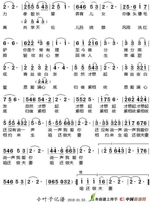 《少年夫妻老来伴》最新曲谱 李成涛、张燕
