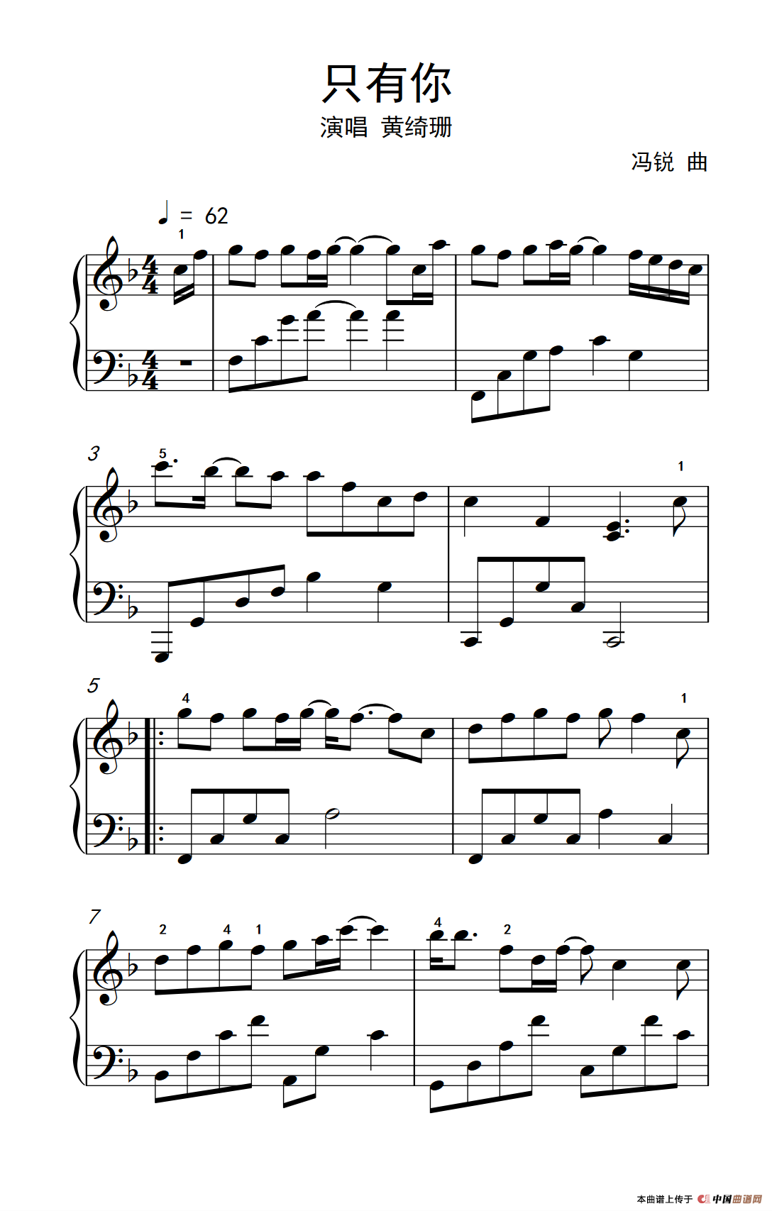黄绮珊演唱的只有你歌词,只有你最新曲谱.
