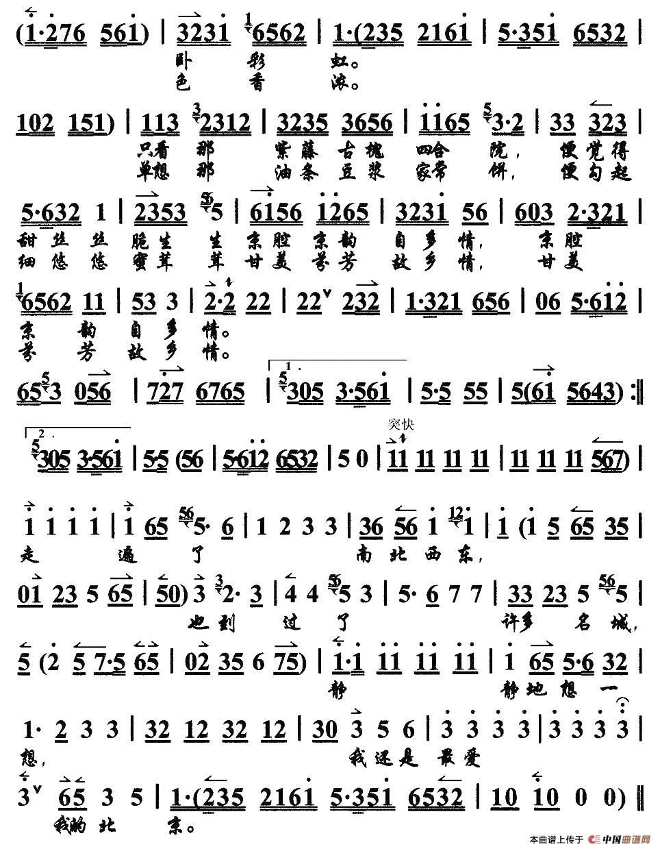 演唱的故乡是北京歌词,故乡是北京最新曲谱.