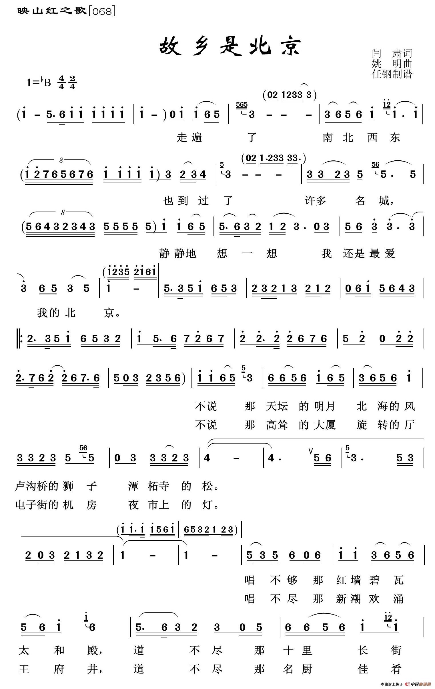 演唱的映山红之歌:故乡是北京歌词,映山红之歌:故乡是北京最新曲谱.