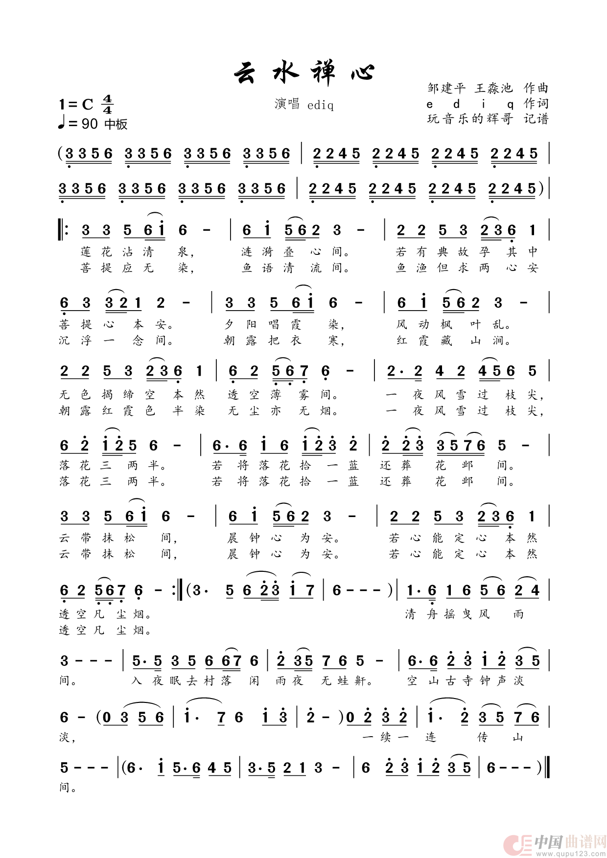 ediq演唱的云水禅心歌词,云水禅心最新曲谱.