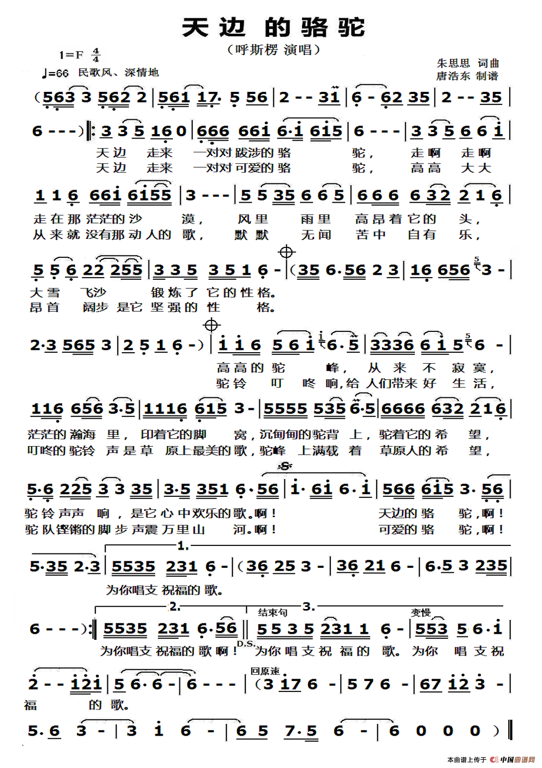 《天边的骆驼》最新曲谱 呼斯楞