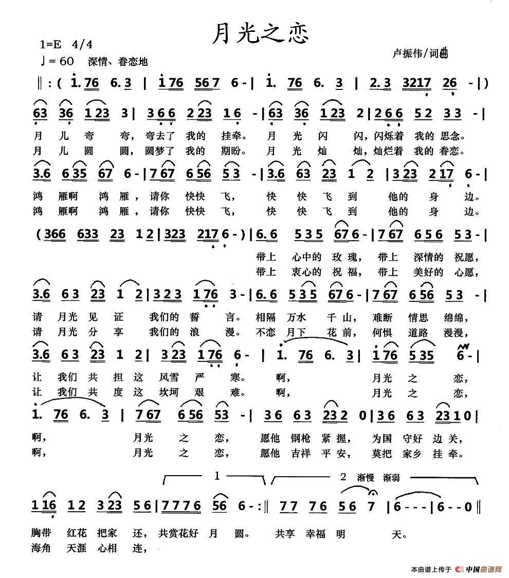演唱的月光之恋歌词,月光之恋最新曲谱.