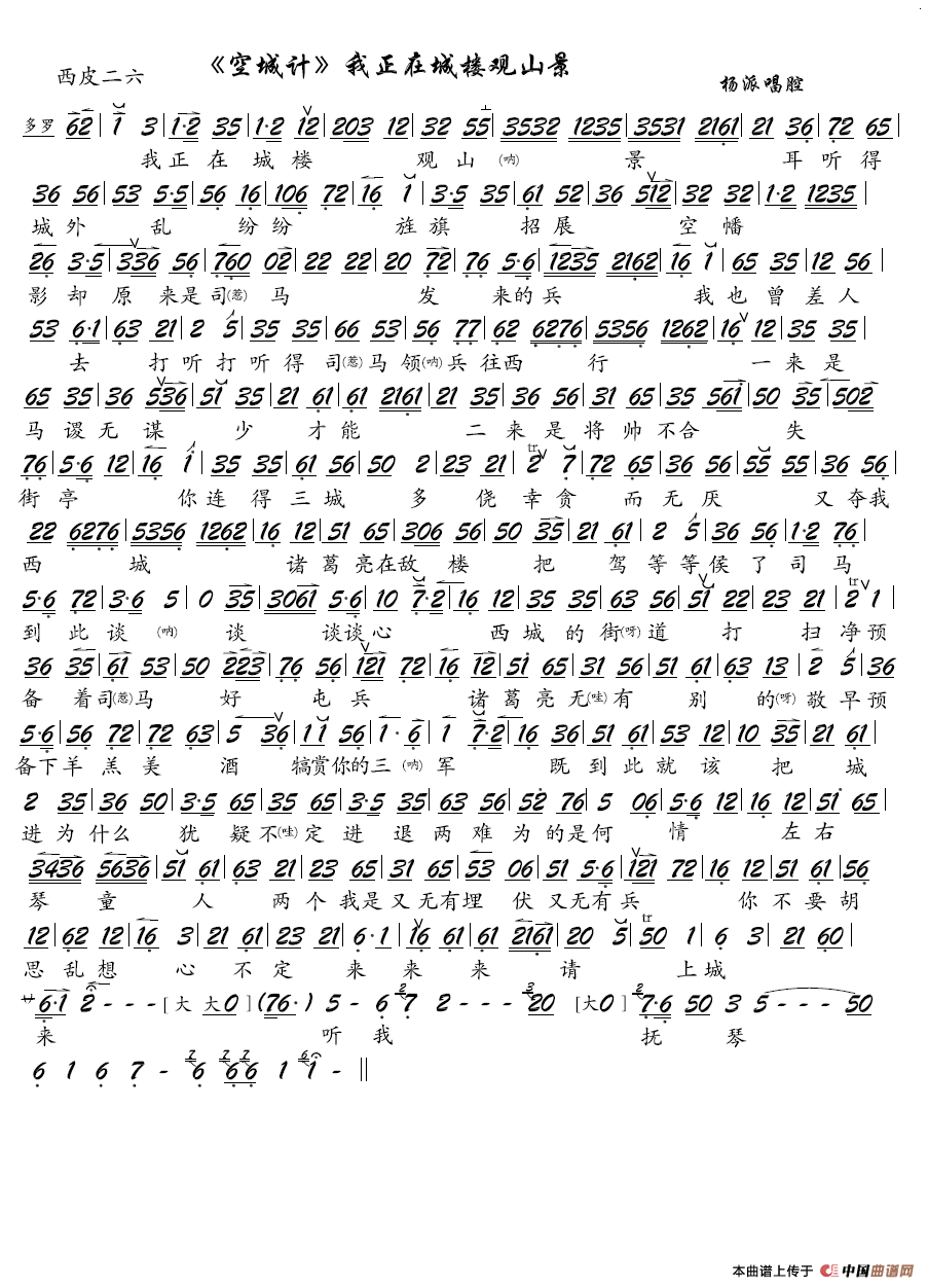 演唱的《空城计》我正在城楼观山景歌词,《空城计》我正在城楼观山景最新曲谱.