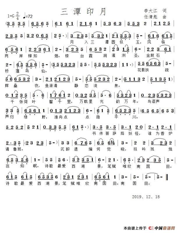 > 三潭印月最新曲谱