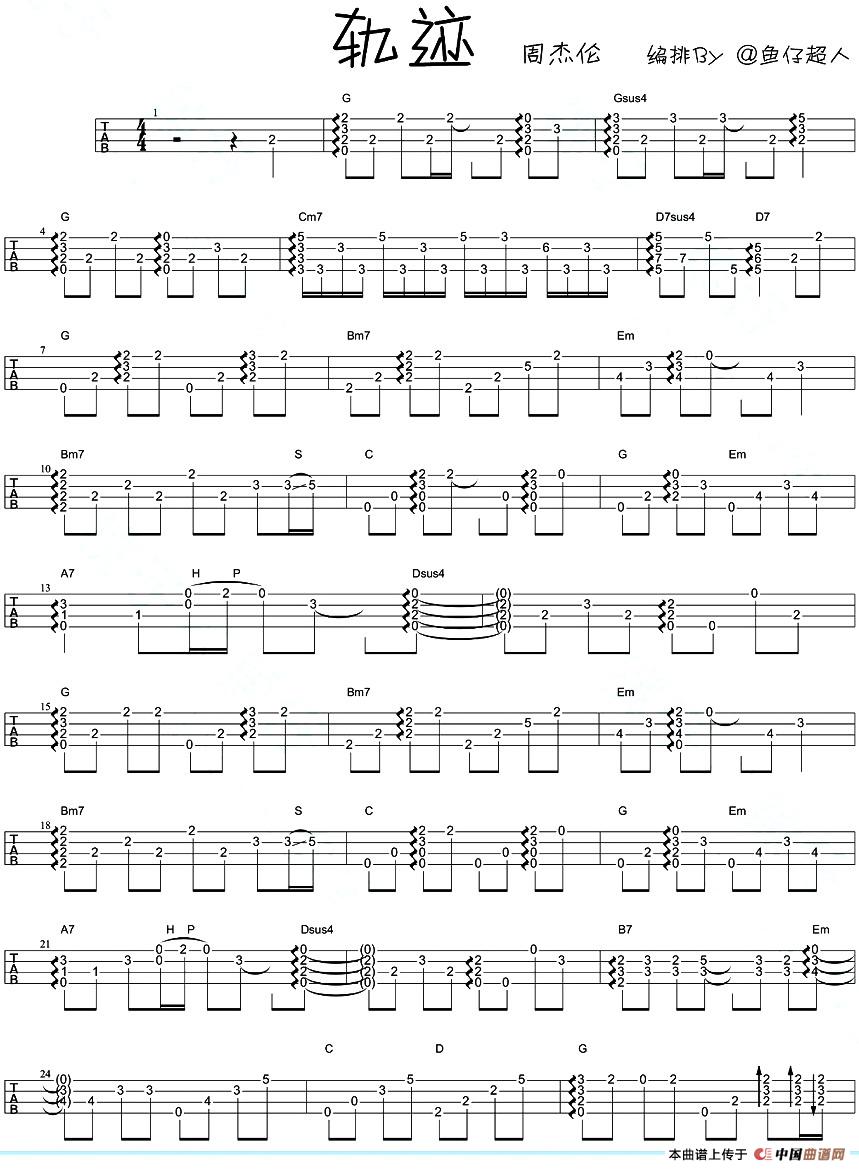 周杰伦演唱的轨迹歌词,轨迹最新曲谱.